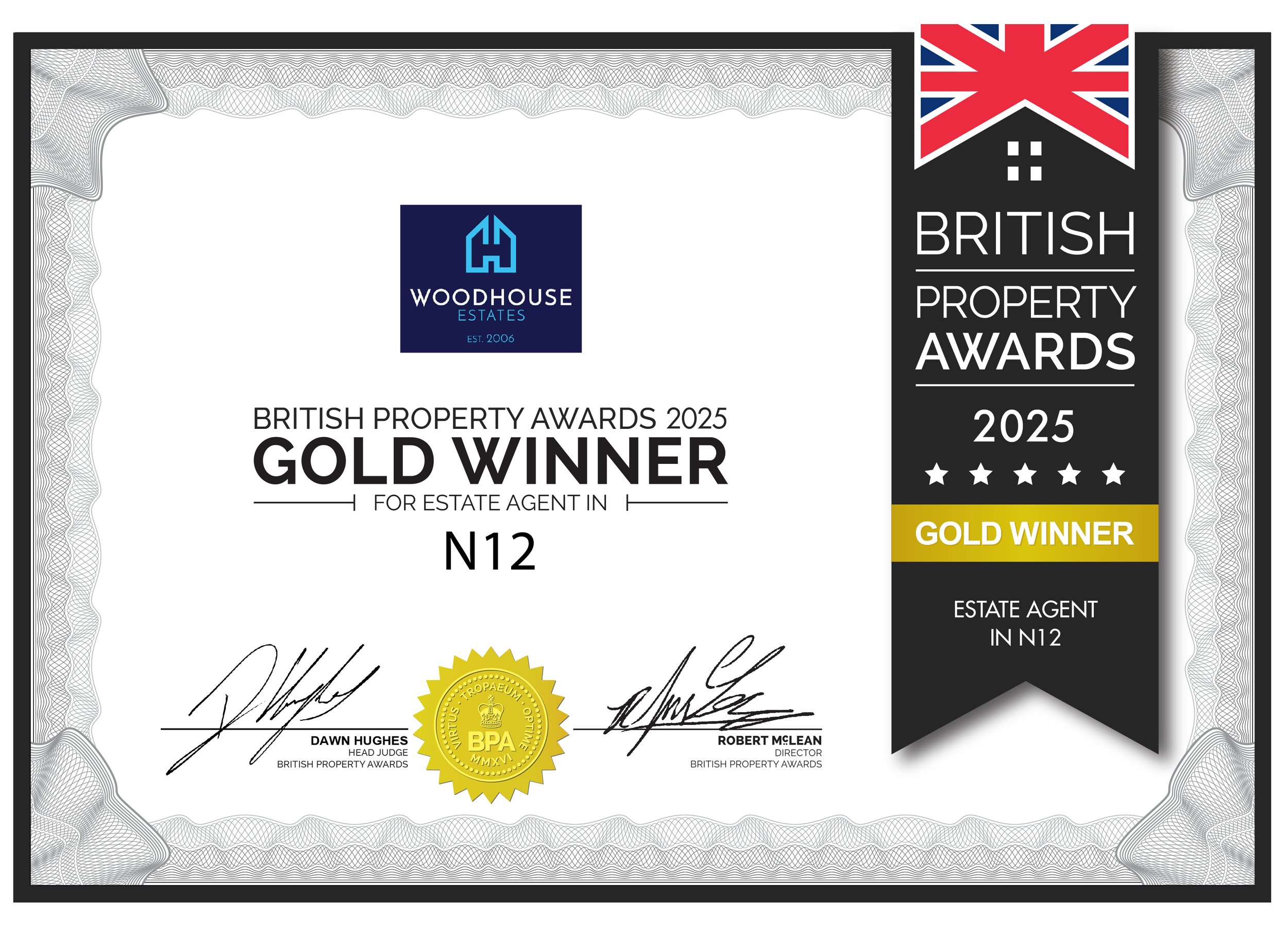 We’re delighted to be recognised by the British Property Awards as both the outstanding Sales & Lettings Agency in N12. We always strive to go above and beyond for our clients in any way we can and to see that hard work acknowledged for the fourth consecutive year means a lot.